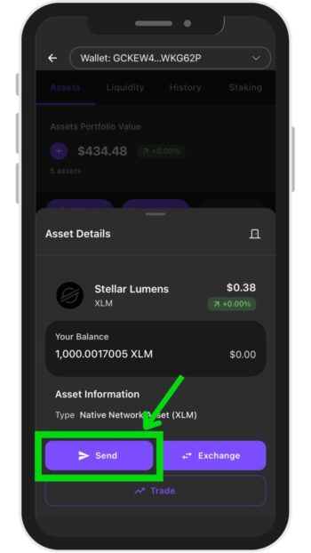 XLMの画面を開いたら、画面左下「Send」ボタンをタップします。