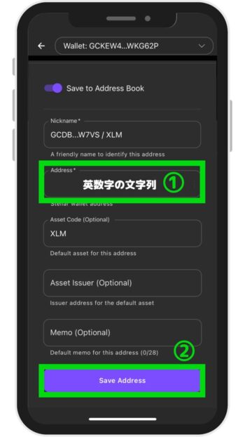- 「Save Address」ボタンをタップ