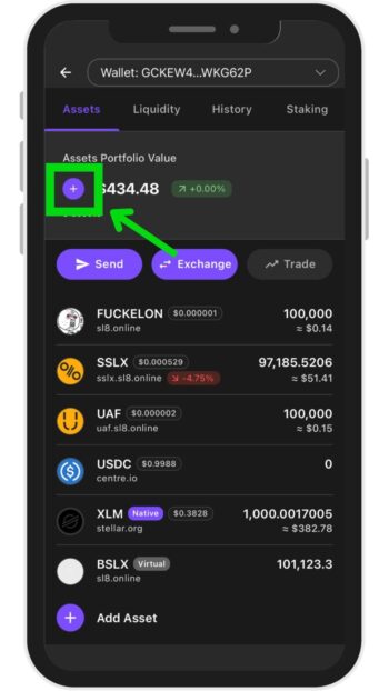 Sl8にてMEXCのXLM用のアドレスを登録できたら、XLMを送金していきます。