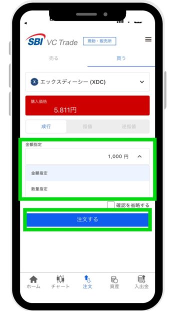 ③ SBI VCトレードで仮想通貨XDCを購入する