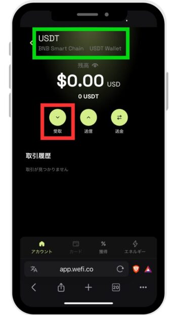 まずはWeFiマイニングを行う際に必要な「USDT(テザー)」の資金調達用として、