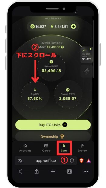 WeFiでは、ITO(マイニング権利)の購入額(投資額)が増えるほど、APR(利回り)の数値も大きくなっていきます。