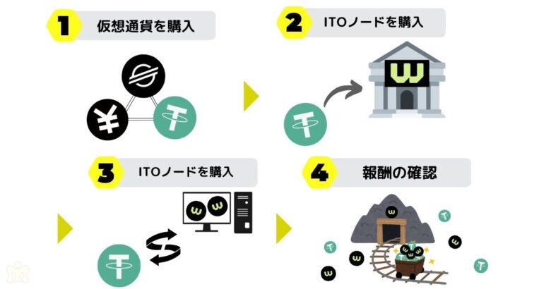 ITOノード(マイニングマシン)でマイニング報酬を得るための"権利"を購入するだけで、マイニング報酬を受け取れるようになります。