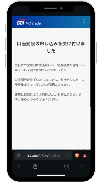 あとは、SBI VCトレード側で、各審査が行われるため、審査が完了するのを待ちましょう。