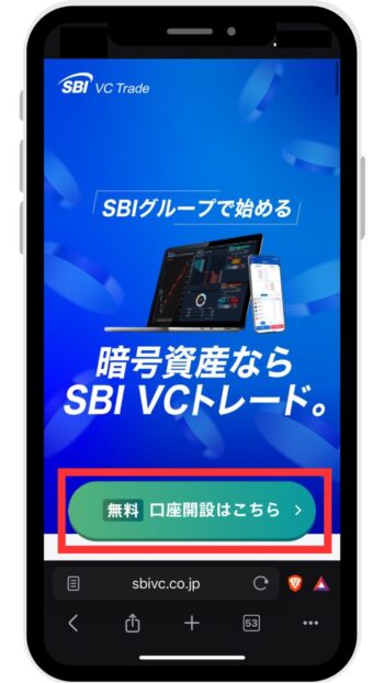 の口座を無料で開設する では、スマホでSBI VCトレードの口座開設を始めていきましょう。(パソコンでも操作自体はほとんど同じです。)