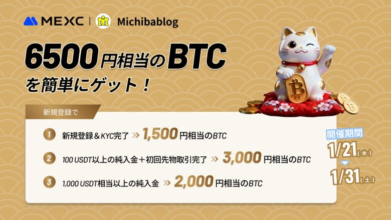 そのため取引手数料が永久に割安になるBitgetの紹介キャンペーンは、仮想通貨投資を続ける上で圧倒的にアドバンテージになります。